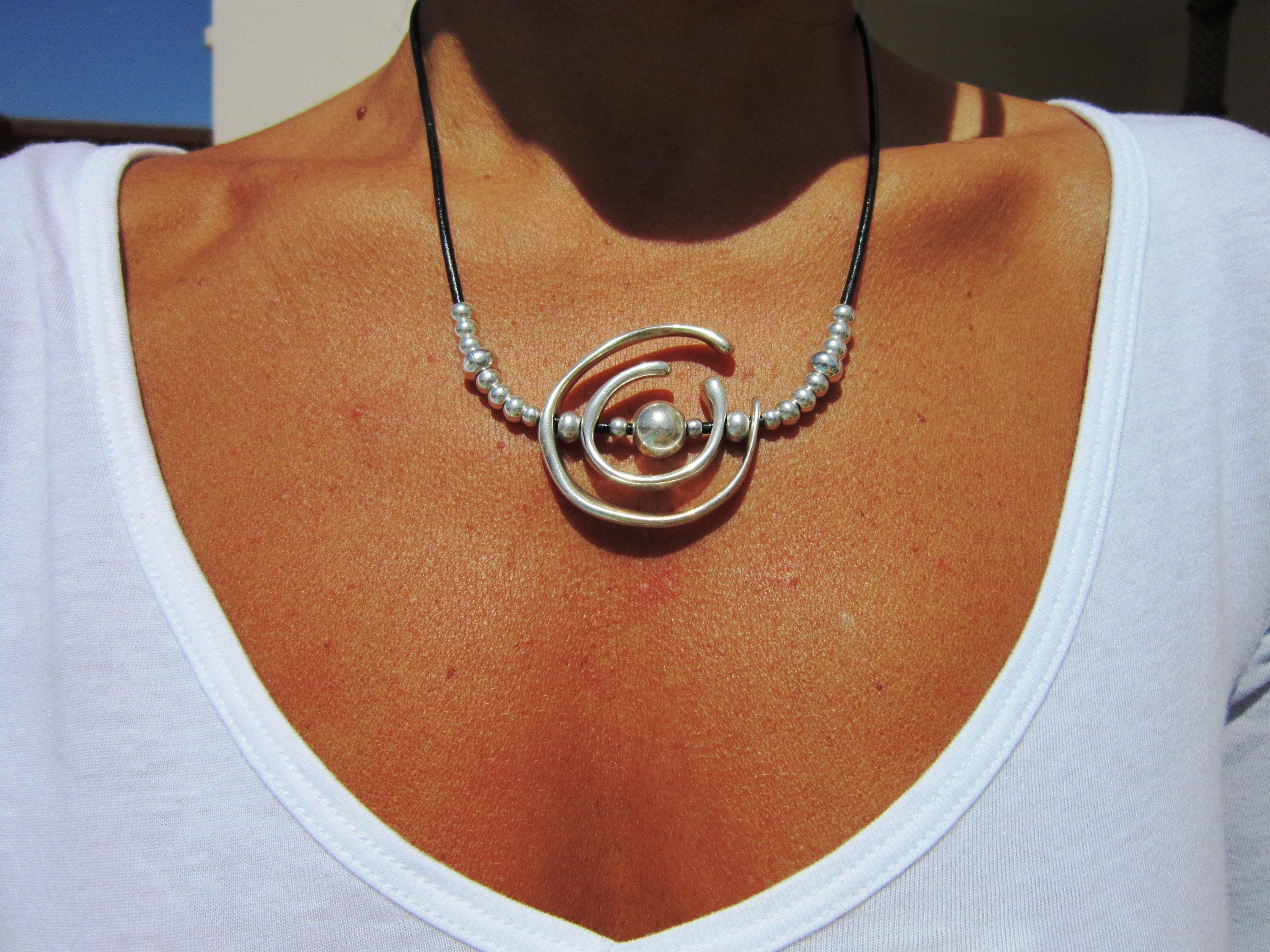 ♥ This Statement leather and silver beaded pendant necklace is part of our best selling items, a perfect blend of timeless style handmade jewelry. Silver necklaces for women made to size to match your style. Designed as a delicate charm necklace, a layered pendant necklace or a bold Couples necklace, it’s available in multiple lengths to match your style. at KEKUGI you can find pendant necklaces, beaded necklaces, charm necklaces, choker necklaces, multi-strand layered necklaces and lariat & Y necklaces, unique bohemian jewelry Best selling items designs.