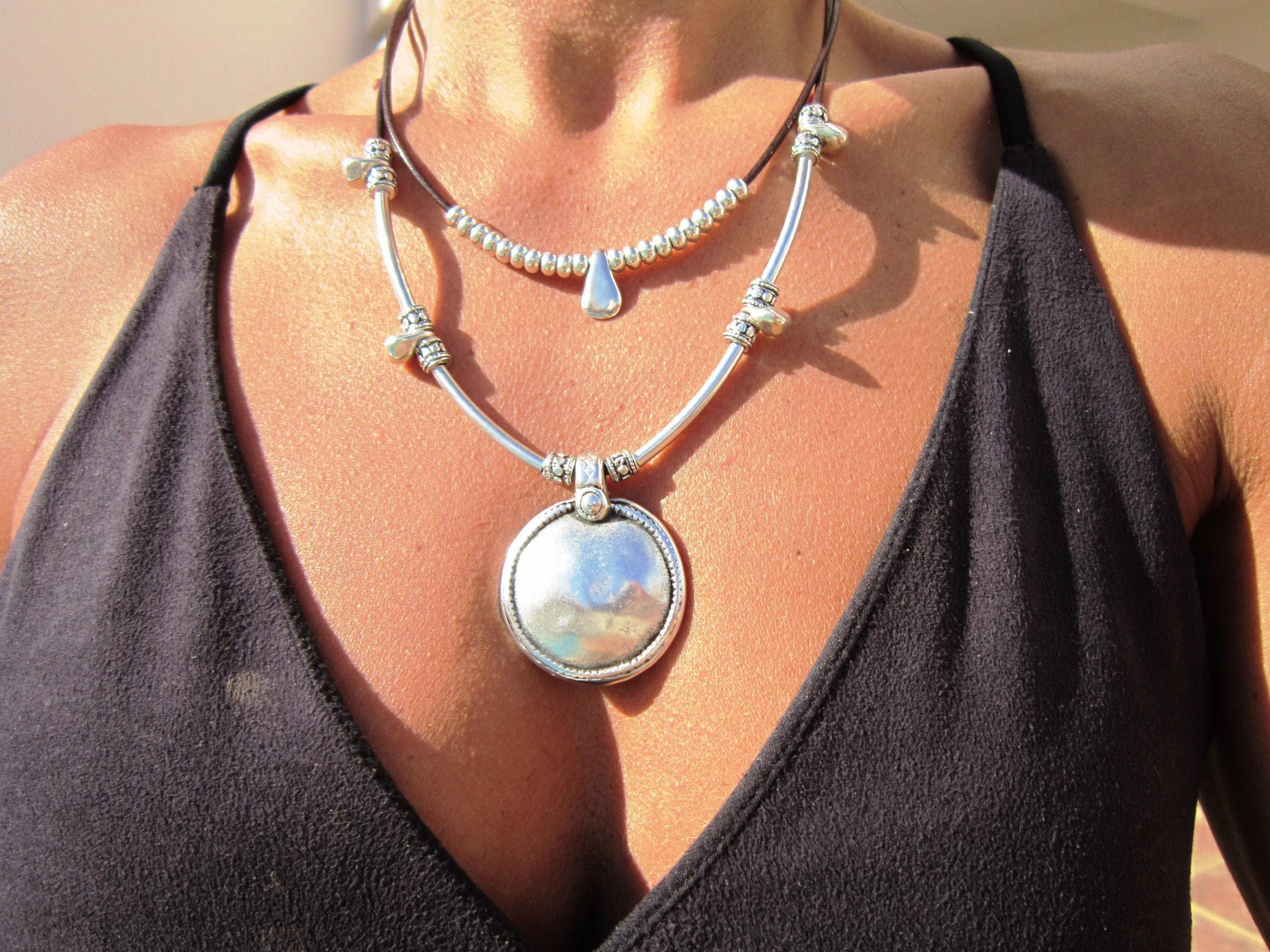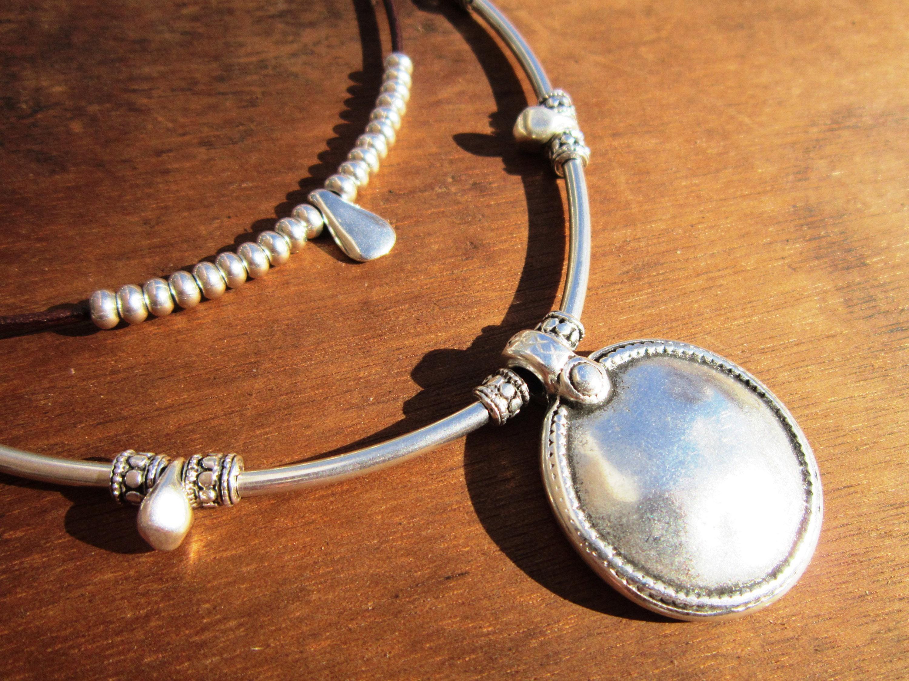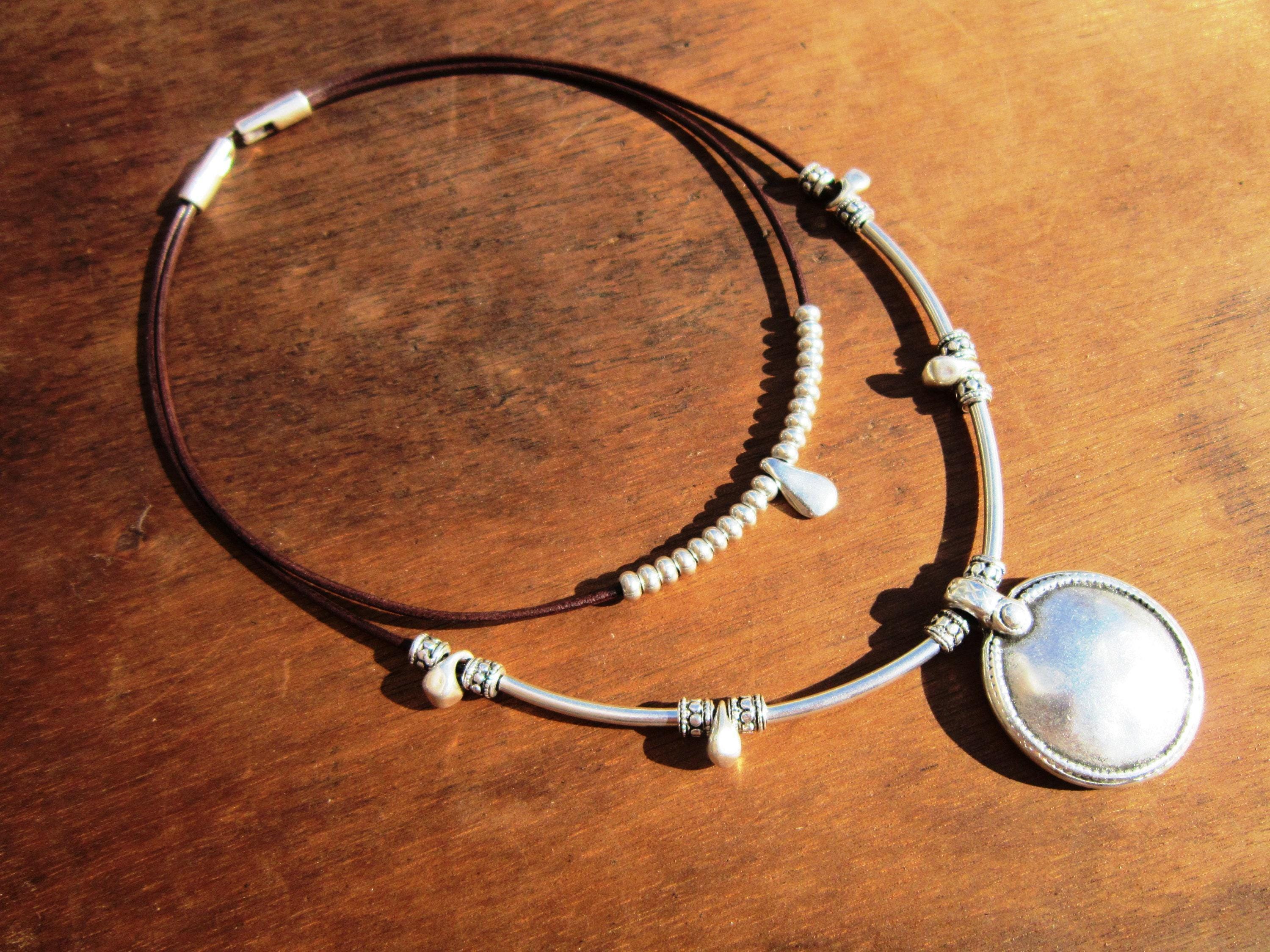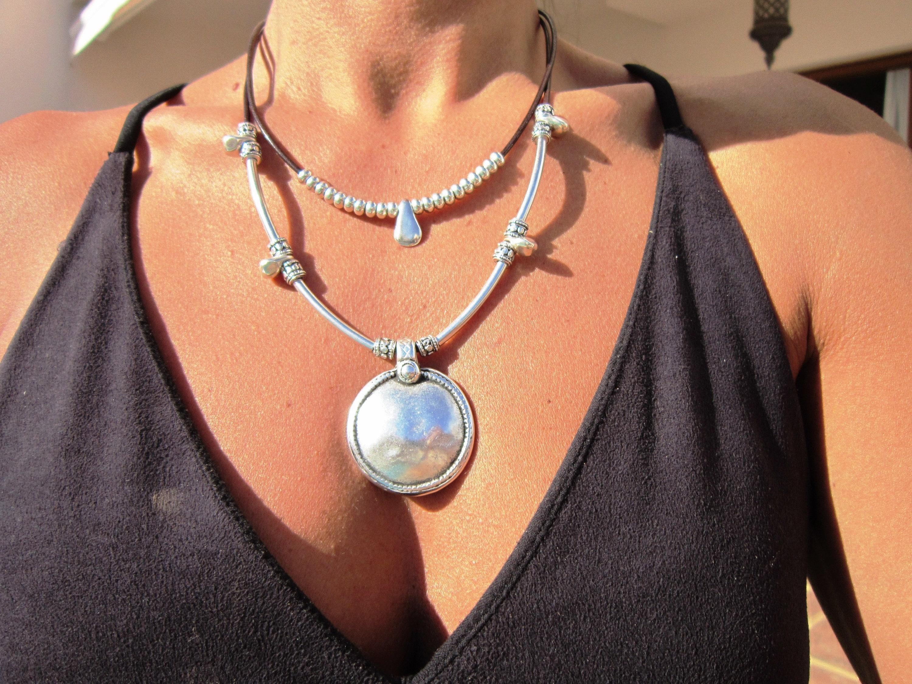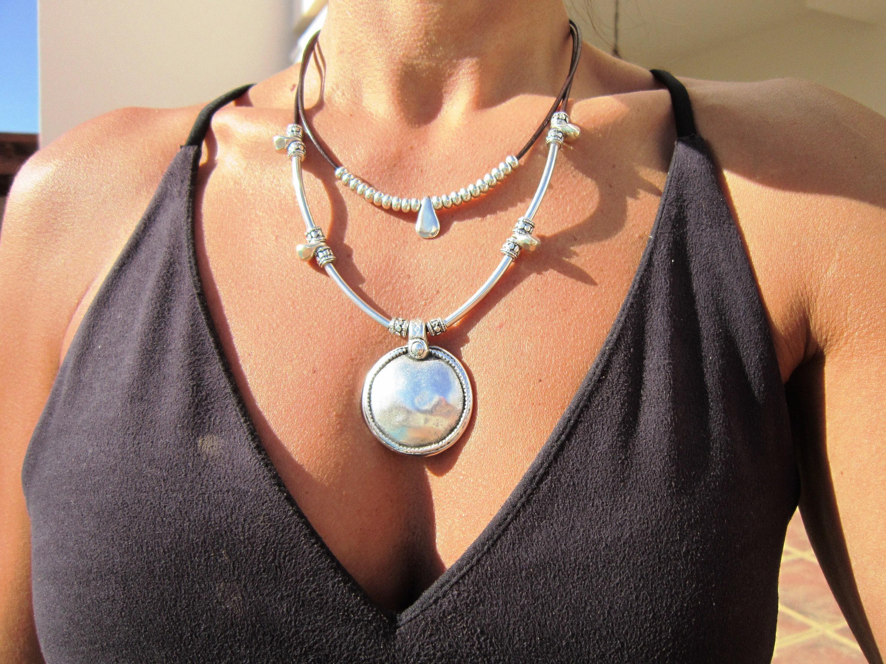 ♥ This layered Statement leather and silver beaded pendant necklace is part of our best selling items, a perfect blend of timeless style handmade jewelry. Silver necklaces for women made to size to match your style. Designed as a delicate charm necklace, a layered pendant necklace or a bold Couples necklace, it’s available in multiple lengths to match your style. at KEKUGI you can find pendant necklaces, beaded necklaces, charm necklaces, choker necklaces, multi-strand layered necklaces and lariat & Y necklaces, unique bohemian jewelry Best selling items designs.