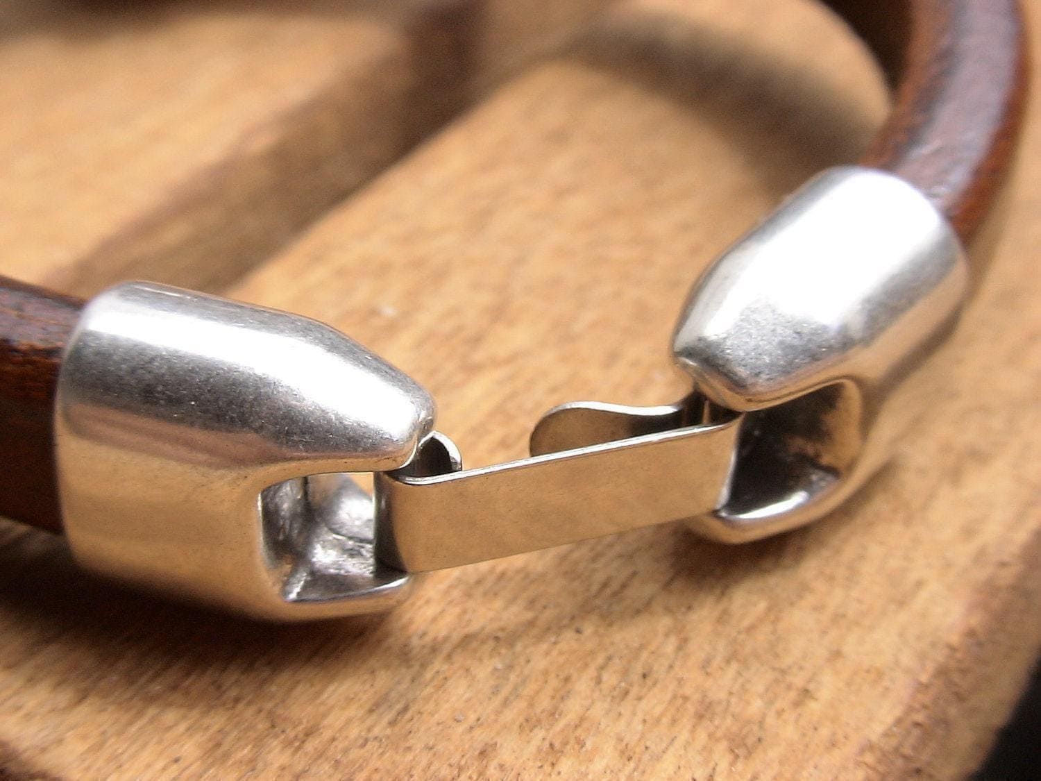 To preserve the look of your leather and silver jewelry, avoid water, cosmetics, and cleaning products. Always store your jewelryin a dry place and use a soft cloth to clean silver parts. Leather may naturally darken slightly over time, giving your jewelry a unique, lived-in feel.