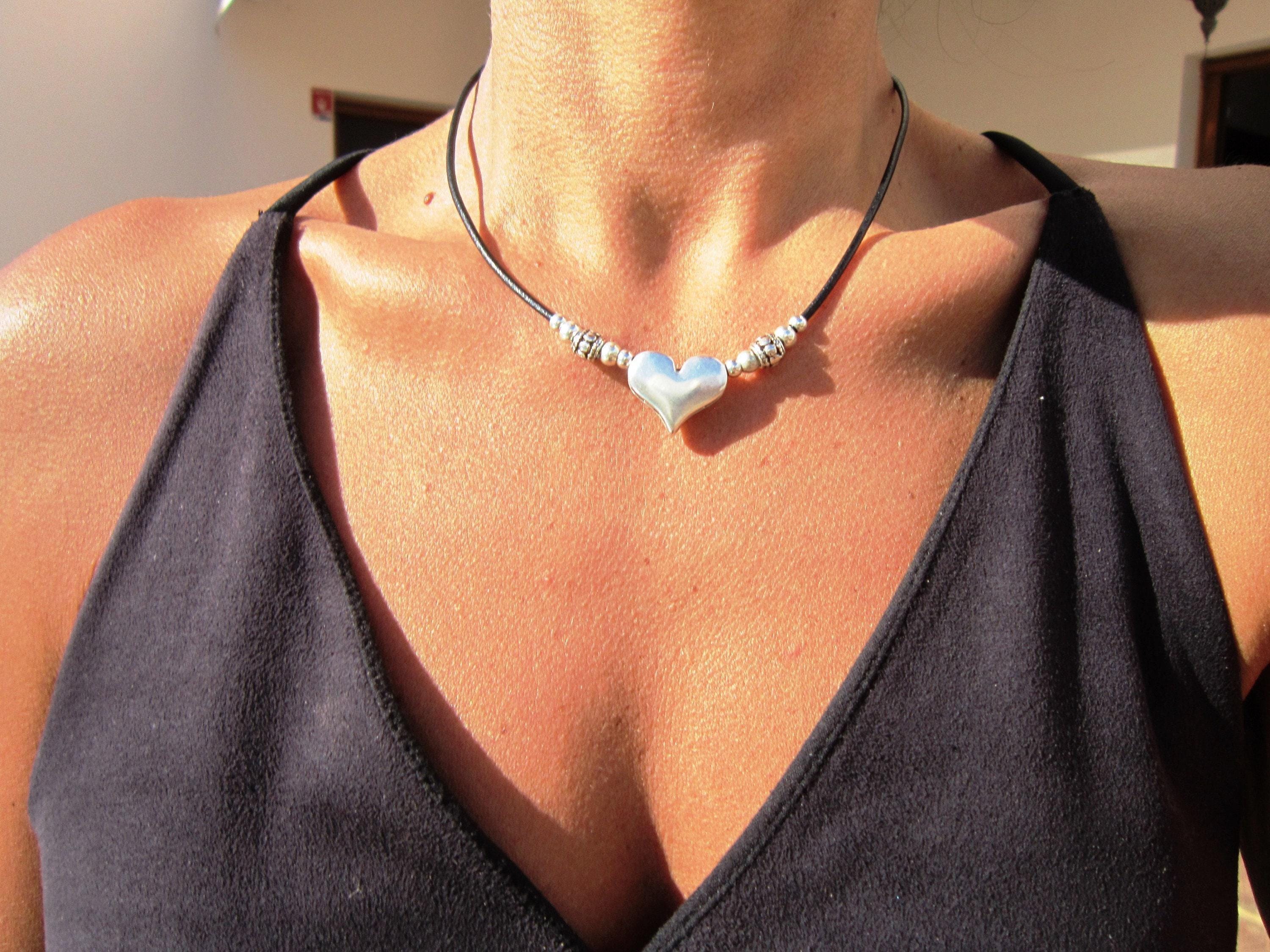 ♥ This Statement silver beaded heart pendant necklace is part of our best selling items, a leather choker necklace that makes a perfect couples necklace gift for her, a unique blend of timeless style handmade jewelry. Silver necklaces for women made to size to match your style. Designed as a delicate charm necklace, a layered pendant necklace, or a bold statement necklace perfect as Couples Necklace it’s available in multiple lengths to match your style. At KEKUGI you can find pendant necklaces, beaded necklaces, charm necklaces, choker necklaces, multi-strand necklaces and lariat & Y necklaces, Custom Bohemian jewelry Best selling items designs.