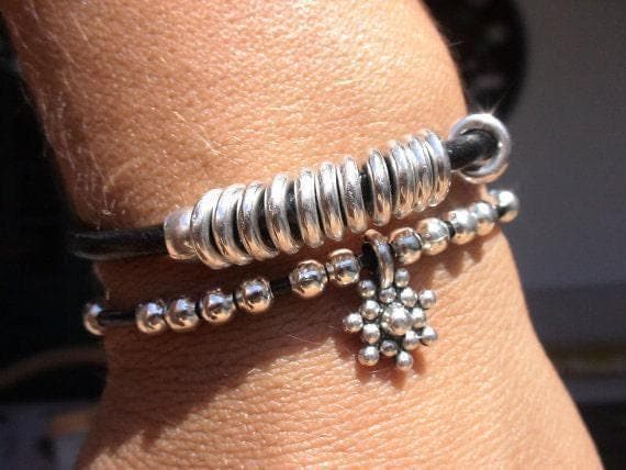 ♥ This elegant silver bracelet is part of our best selling ítems, a perfect blend of timeless design and handmade jewelry. Designed as a delicate leather charm bracelet, beautiful stacked together on a playful set of beaded bracelets to suit your style. Whether you're looking for a minimalist custom bracelet, a symbolic friendship bracelet, or a thoughtful jewelry gift, this piece can be personalized just for you. It makes a meaningful gift for her, a special birthday gift, or a truly one-of-a-kind custom gift. Add your own touch to create personalized jewelry or a lasting piece of personalized gifts she’ll always cherish.