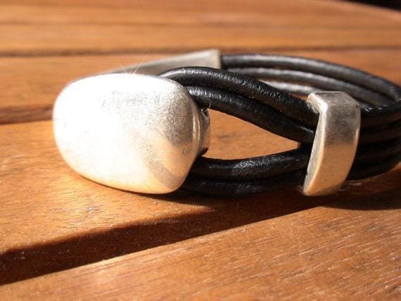 To preserve the look of your leather and silver jewelry, avoid water, cosmetics, and cleaning products. Always store your jewelryin a dry place and use a soft cloth to clean silver parts. Leather may naturally darken slightly over time, giving your jewelry a unique, lived-in feel.