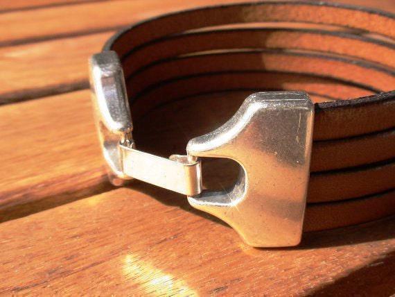To preserve the look of your leather and silver jewelry, avoid water, cosmetics, and cleaning products. Always store your jewelryin a dry place and use a soft cloth to clean silver parts. Leather may naturally darken slightly over time, giving your jewelry a unique, lived-in feel.