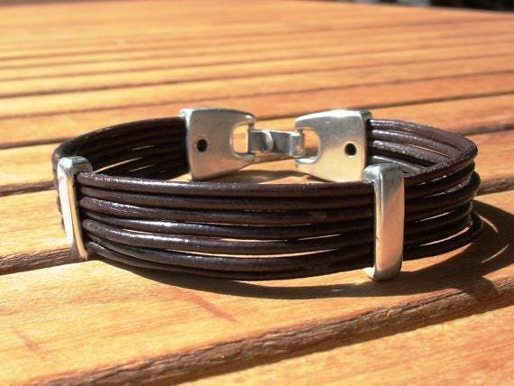 Leather & Silver Mens Bracelet • Matching Couple Bracelets • Custom mens bracelet Gift for him • Best Selling Items jewelry by Kekugi